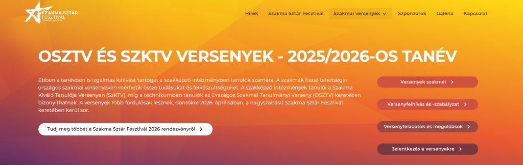 2025. 10.20-án elindult a jelentkezés a 2025/2026. tanév Szakma Kiváló Tanulója Versenyére (SZKTV) és a Országos Szakmai Tanulmányi Versenyére (OSZTV).