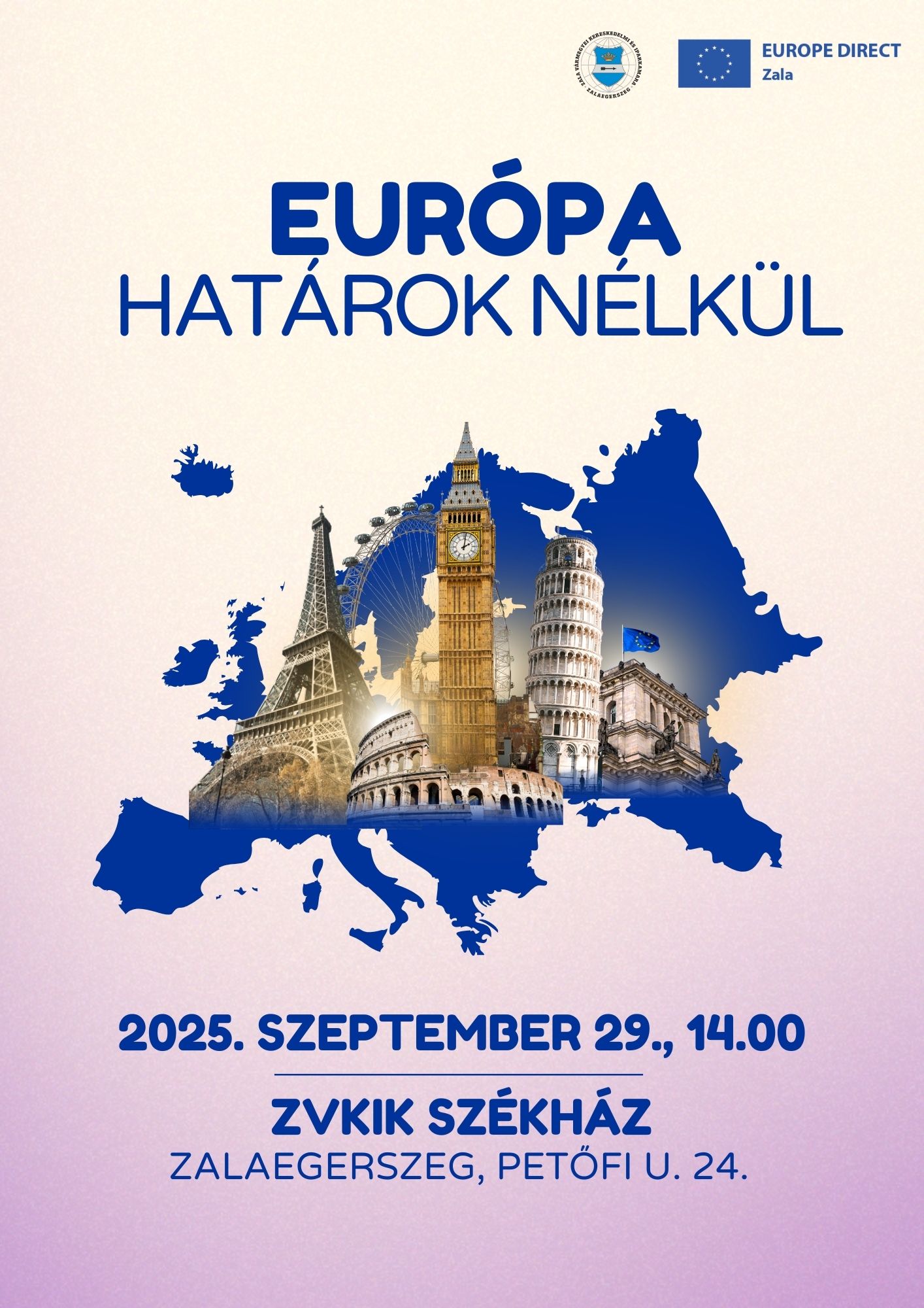 A Zala Vármegyei Kereskedelmi és Iparkamara és a Europe Direct Zala 2025. szeptember 29-én, 14.00 órai kezdettel Európa határok nélkül címmel előadást szervez.