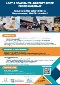 A WorldSkills Hungary oldalán megjelent a EuroSkills 2027 Düsseldorf nemzeti válogatóversenyének felhívása pincér (Restaurant Service) szakmában.