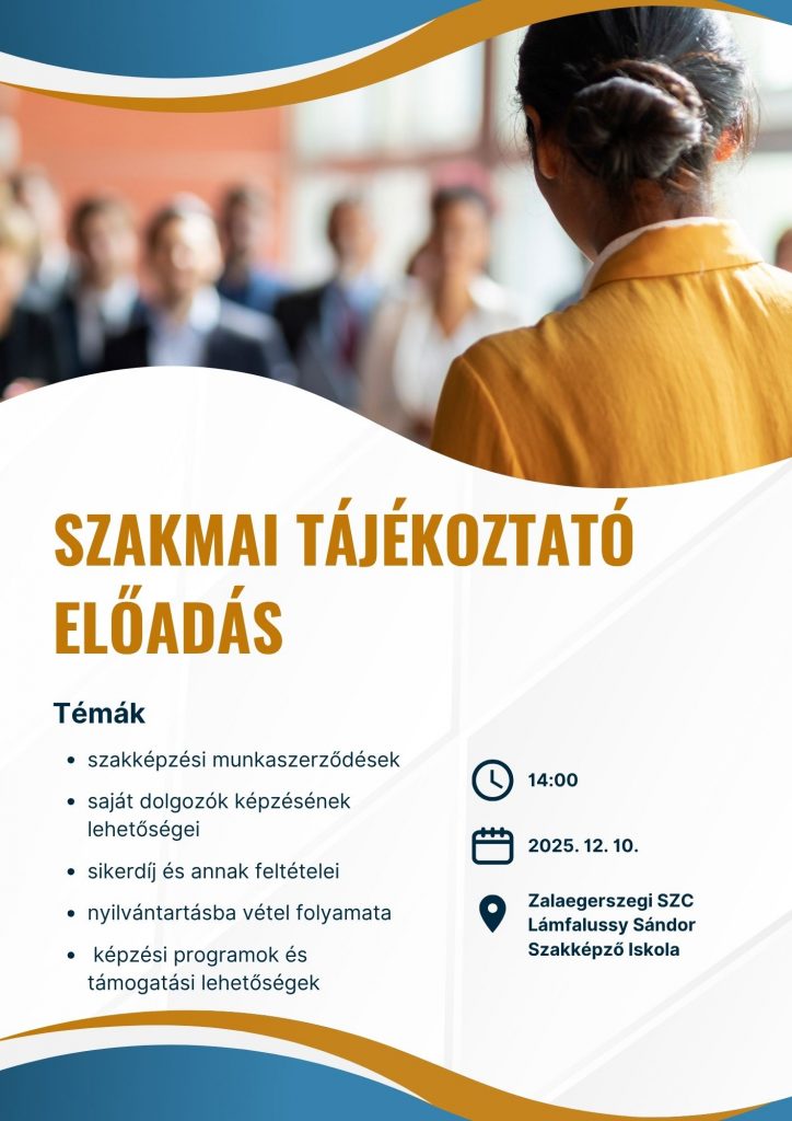 A Zalaegerszegi SZC Lámfalussy Sándor SzakképzÅ‘ Iskola és a Zala Vármegyei Kereskedelmi és Iparkamara (ZVKIK) tisztelettel meghÃvja Önöket a nyÃlt nap keretében megrendezésre kerülÅ‘ szakmai tájékoztató elÅ‘adásra.
