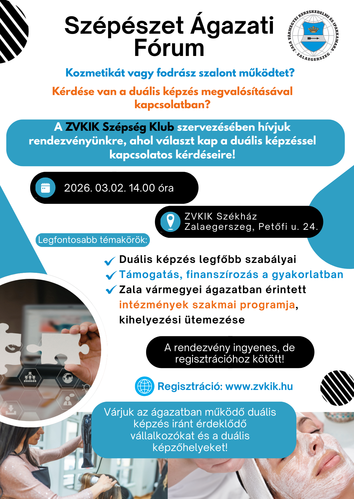 A fórumon a szépészet ágazatban oktató Zala vármegyei technikumok (ZSZC Asbóth Sándor Technikum, ZSZC Báthory István Technikum és NSZC Zsigmondy Vilmos Technikum) is bemutatkoznak, ismertetve képzési programjukat és tanulói kihelyezési ütemezésüket, segítve ezzel a vállalkozások tervezését.