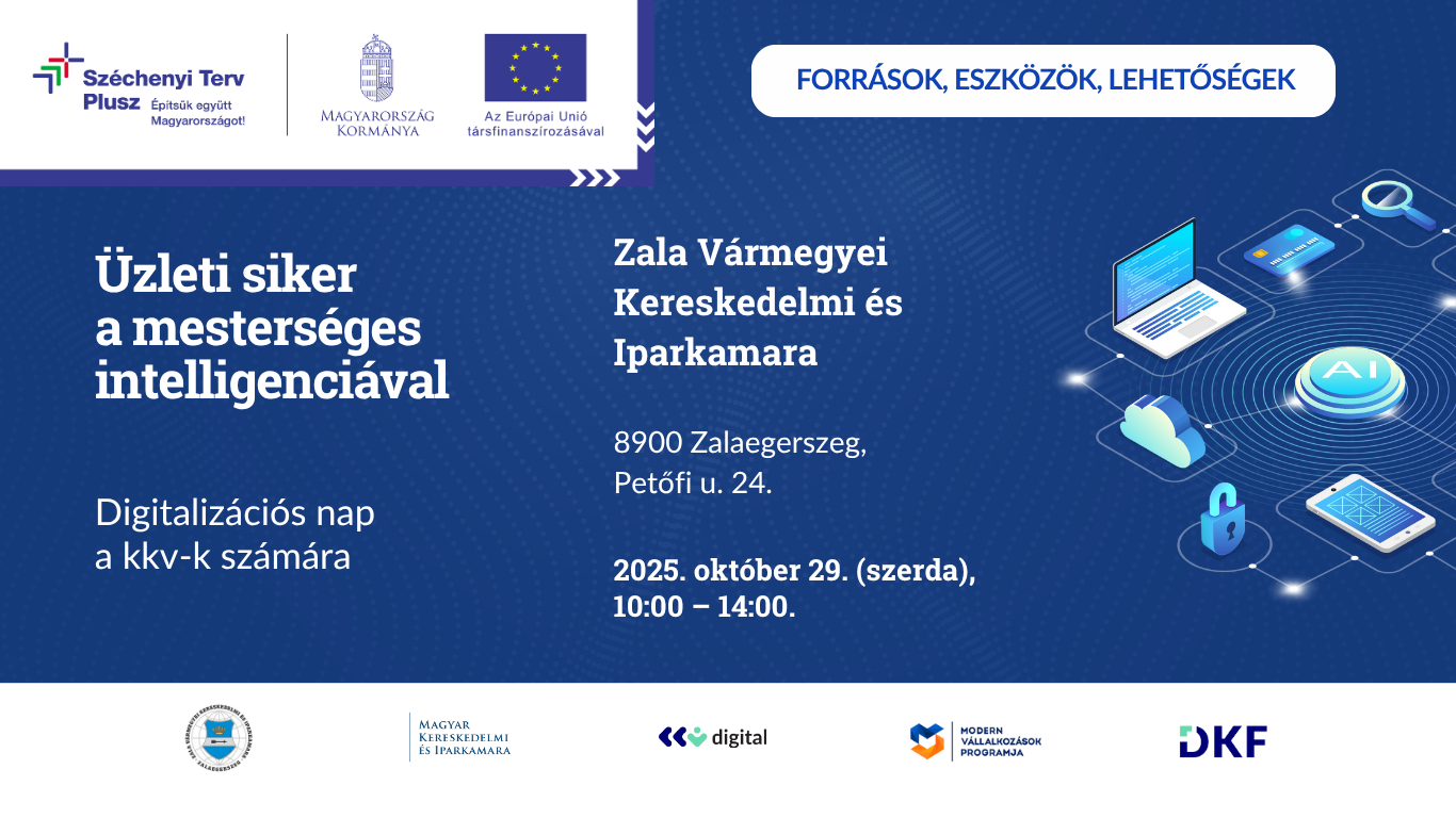 A Zala Vármegyei Kereskedelmi és Iparkamara várja a vállalkozásokat a „Digitalizációs kkv nap – Üzleti siker a mesterséges intelligenciával” című rendezvényére.
